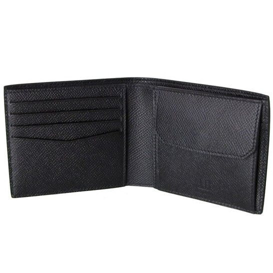 Dunhill Men's Wallets. SKU: DU18F2320CA001. Color: Black. Size: 11.5 x 9 x 2.5 cm. Dunhill Cadogan 4cc Coin Purse Billfold Leather Wallet. This wallet offers maximum practicality in a compact form, featuring four card slots, two compartments for bills and tickets, two side slots for receipts, coin pocket and a subtle dunhill logo in silver foil. 100% Calf Leather. Made in Italy.